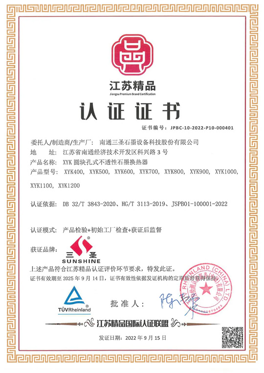 優(yōu)質(zhì)產(chǎn)品是企業(yè)的核心,公司石墨設備標準化建設獲得“江蘇省戰(zhàn)略性新興產(chǎn)業(yè)標準化試點項目”。產(chǎn)品標準化夯實質(zhì)量品牌發(fā)展,公司被列入江蘇"旗艦領航”重點培育計劃。
